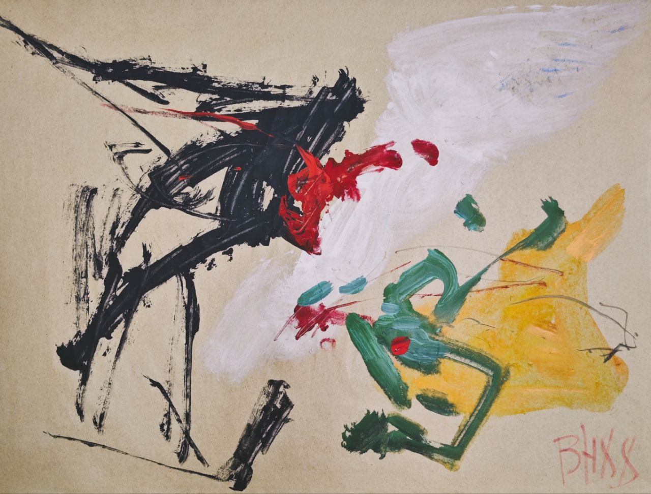Без названия абстрактная каллиграфия бумага, акрил оформлена в раму, стекло, паспарту Размер: 36,1 х 33,1 см Размер в раме: 50,1 х 47,1 см 1994 г. В правом нижнем углу авторская подпись монограммой и дата: ВН94 Провенанс: частная коллекция, Москва