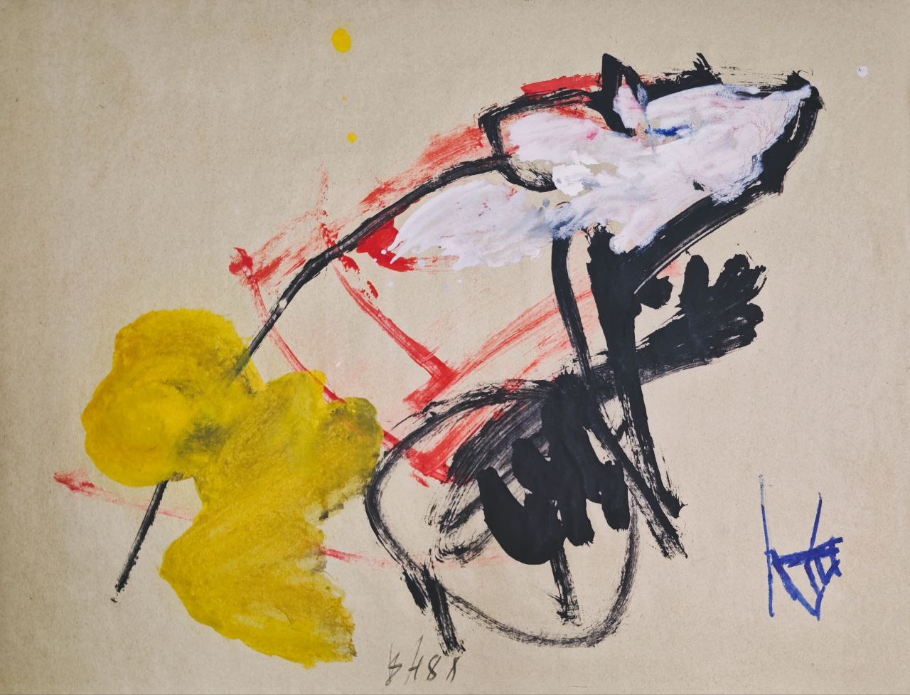 Без названия абстрактная каллиграфия бумага, акрил оформлена в раму, стекло, паспарту Размер: 28,4 см х 38,7 см Размер в раме: 42,4 х 52,7 см 1988 г. В правом нижнем углу авторская подпись монограммой и дата: ВН88 Провенанс: частная коллекция, Москва